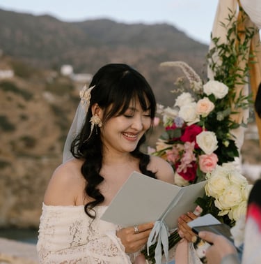 I'm Chloe, founder and lead of "θymises Weddings" based in Greece. Born in the UK and raised on the beautiful island of Ios, I bring years of experience in turning wedding dreams into reality.